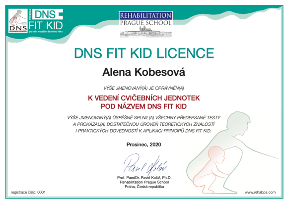 Na konci kurzu obdrží frekventanti certifikát o účasti a účastníci, kteří adekvátně vypracují video test a během kurzu prokáží kompetenci v programu DNS FIT KID obdrží licenci kvedení cvičebních jednotek pod názvem DNS FIT KID.