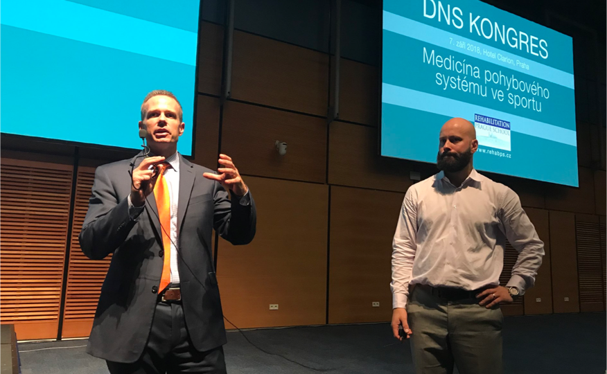 Keynoted by Professor Kolar himself, the symposium focused on DNS concepts and some new material. Myself, Robert Lardner, PT and Brett Winchester, DC all did presentations demonstrating how DNS has influenced us in our practices, each in our area of expertise. I had the distinct pleasure of following Prof. Kolar, which felt a lot like following the Beatles or Led Zepplin. Thanks a lot Alena. Having been applying DNS to strength training since the day I came across it more than a decade ago, my presentation was on training stability in strength & conditioning. I discussed how the industry over-emphasizes the “posterior chain”, which produces a pathological posture Prof Kolar refers to as “Open Scissors” and I call an Extension/Compression Stabilizing Strategy. I covered why this pathological stabilizing strategy is so prevalent in the industry and then laid out what we need to change about our training so we can promote optimal movement strategies instead of provoking pathological ones. Next up was the always dynamic and always funny Brett Winchester. Being on the medical staff for the St. Louis Cardinals (a professional baseball team) he presented on DNS and the throwing athlete. He showed how the traditions of the profession are inconsistent with the ideal movement strategies described in DNS. He demonstrated how and why this has resulted in a pandemic level of Tommy John surgeries. He showed what he is doing with the Cardinals to help reduce the incidence of injury amongst the athletes. As always, he killed it. He was even able to pull off a few jokes (and get a laugh) which is often difficult in the large symposium setting, but even more difficult given the fact that 99% of the people in the audience were not native English speakers. Last, and certainly not least, was the brilliant, poised and gracious Robert Lardner, PT. Robert’s presentation was fascinating and discussed the problem of asymmetry and the resulting torsion of the torso that occurs. He discussed how the posture and function is disturbed and then showed how DNS can be used to correct the functional torsion (not his term). Robert is quite an artist of a physical therapist and his lectures are always profound and detailed and yet practical and commonsensical at the same time. He did not disappoint. This opportunity was a great honor for all three of us and we hope that we represented DNS well to this audience of Czech physicians, physiotherapists and trainers.